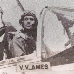 " J'étais le leader du Fligt jaune comprenant le Lt SCRIVNER, le Lt OLSON et le Lt AMES. Nous vlions à 230 degrés à 12.000 pieds d'altitude ce 25 Mai 1944, à 10H45, quand quelqu'un dit "Flak Kerig!". Je je vis quelques explosions de flammes, similaire à une Flck légère devant mon appareil. En tournant doucement, je regardai dans mon rétroviseur arrière mais je ne vis rien. Immédiatement, quelqu'un d'autres cria à la radio "Fw-190" et je plongeai violemment à droite. Je vis le moteur droit du Lt OLSON en feu et un appareil ennemi dans mon aile. Echappant à mon assaillant, j'attaquai un autre Fw-190 et lui tira dessus l'endommageant puis je cessai le combat étant de nouveau attaqué par un autre. Les pilotes du Flight bleu arrivèrent et engagèrent le combat. Je vis alors un parachute descendant, sans doute le Lt OLSON. Je ne vis, ni entendis rien concernant les Lt SCRIVNER et Lt AMES après le commencement de ce combat. Je pense qu'ils ont été abattus dès le début du combat et je ne vis aucun parachute".