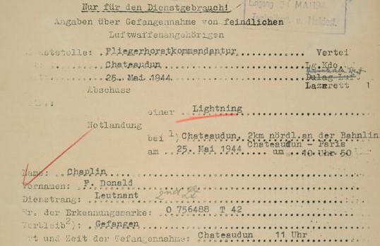 La perte du P-38 du Lt CHAPLIN Voici le récit du Lt Donald