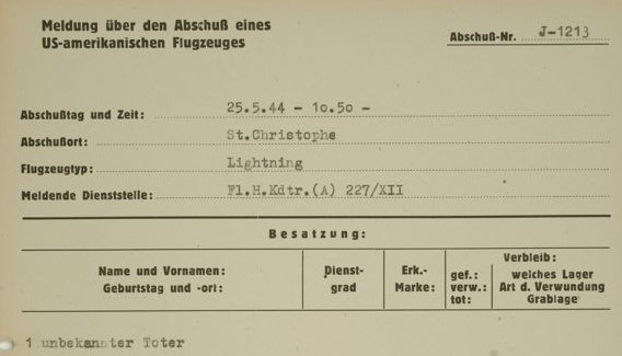 LES ARCHIVES ALLEMANDES Les archives allemandes du 25 Mai 1944 confirment la survenance d'un combat aérien entre des P-38 et des Fw-190. Les Fw-190 du 3./JG2 prirent en