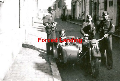 Capture du Sgt Morris ANDERSON dans un champ puis transport du prisonnier dans un Sidecar allemand dans Châteaudun (Collection