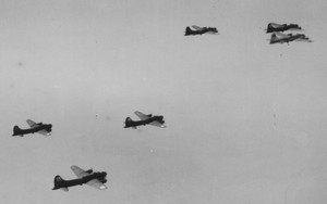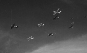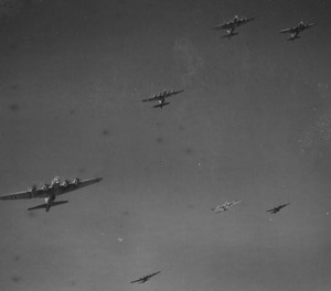 Photos des B-17 du 452nd BG le 28 Mars 1944 en direction de Châteaudun (Source NARA) Le déroulement du bombardement