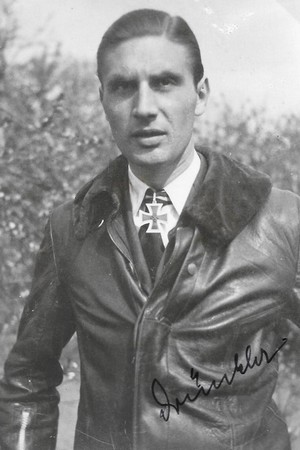 Oblt Ernst-Georg DRUKLER et un exemplaire de Bf-100 G-4 de la NJG5