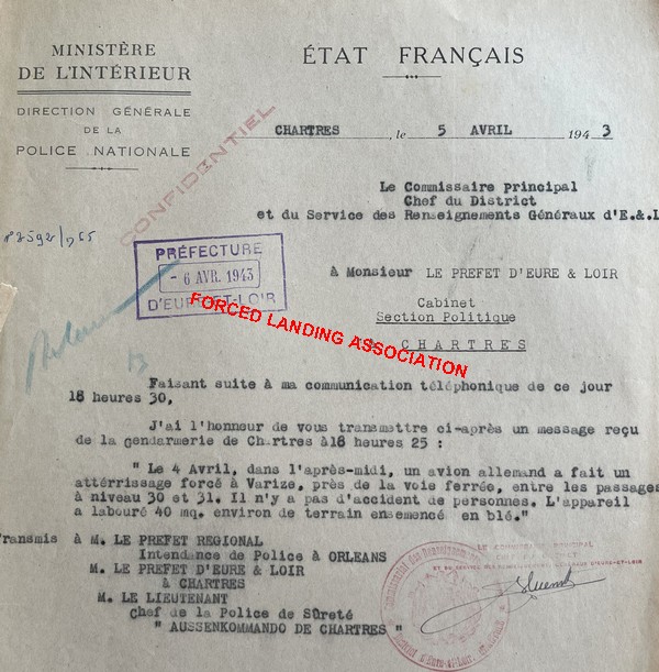 Rapport de la Police de Chartres du 05/04/1943 (source: AD28) .