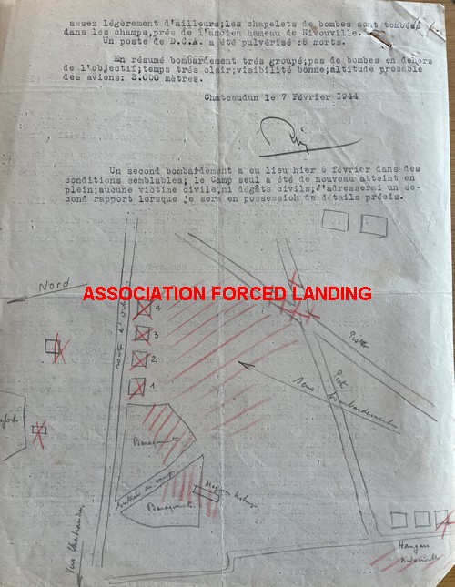 Face au bombardement nocturnes effectués par les bombardiers allemands He-177, l'USAAF réagit immédiatement pour localiser et détruire les bases d'où décollent ces bombardiers allemands à long rayon d'action. Vers 12H00, le terrain d'aviation de Châteaudun subit son second bombardement par 61 B-17 (dont le 306th BG) et 8 B-24 du 92nd BG et les B-24 du 93rd BG qui larguent 828 bombes de 250 kg à une altitude de 15.000 pieds. La formation arriva du Sud-Ouest vers le Nord-Est. Les bombes tombèrent au centre du terrain d'aviation et le groupe de hangars situés au Sud (Nivouville) fut partiellement manqué. En revanche, deux grands hangars à l'Ouest du terrain furent détruits par les flammes et quelques bombes furent éparpillées sur les pistes. Les résultats n'étant pas jugés convaincants, un second bombardement massif fut organisé pour le lendemain. Les 21 B-17 du 306th BG étaient protégés par une escorte de chasseurs-bombardiers et larguèrent leurs bombes sur l'objectif à 12H04. La visibilité sur l'objectif était excellente avec une Flak modérée mais très précise, endommageant légèrement 9 appareils et sérieusement deux appareils -42-31454 et 42-39945). Les résultats du bombardement par le 306th BG furent jugés excellents.