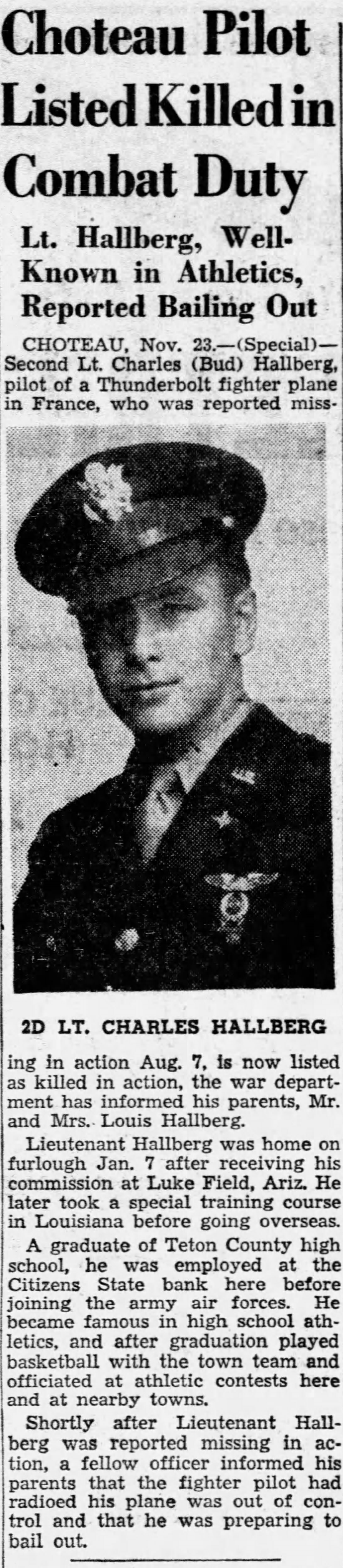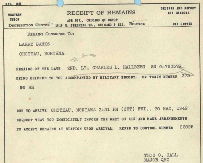 2nd Lt Charles L. HALLBERG (matr.