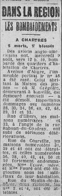 août 1944. Bombardement des Trois-Ponts de Chartres A 10H15, une