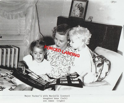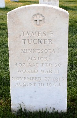 Témoignage de l'ailier du 2nd Lt Ray G. CLARK: "Je volais dans le Flight Blanc en position n°3 pour une mission à Châteaudun. Nous étions à 1.200 mètres d'altitude quand nous avons commencé notre plongeon et le Major TUCKER m'appela pour me dire de tourner à gauche en raison de la présence du poste de Flak. Nous avons survolé l'objectif à très basse altitude. Nous n'avons pas localisé le poste de Flak qui était intense et précise. Le Major me dit de ne pas larguer nos bombes et de ne pas s'attarder sur ce pont. J'étais en dessous de lui et l'appela pour lui dire que sa bombe droite était en feu. Je lui dis de larguer sa bombe, ce qu'il fit mais son moteur prit également feu. L'hélice se mit en drapeau. Nous étions à 90 mètres d'altitude, j'étais légèrement derrière lui à 90 mètres à sa gauche lorsqu'il plongea directement. Je pense qu'il a été tué dans son appareil, avant le crash".