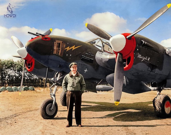 Major James E. TUCKER et son P-38 n°44-23637 "Margie II" (nom de son épouse) .
