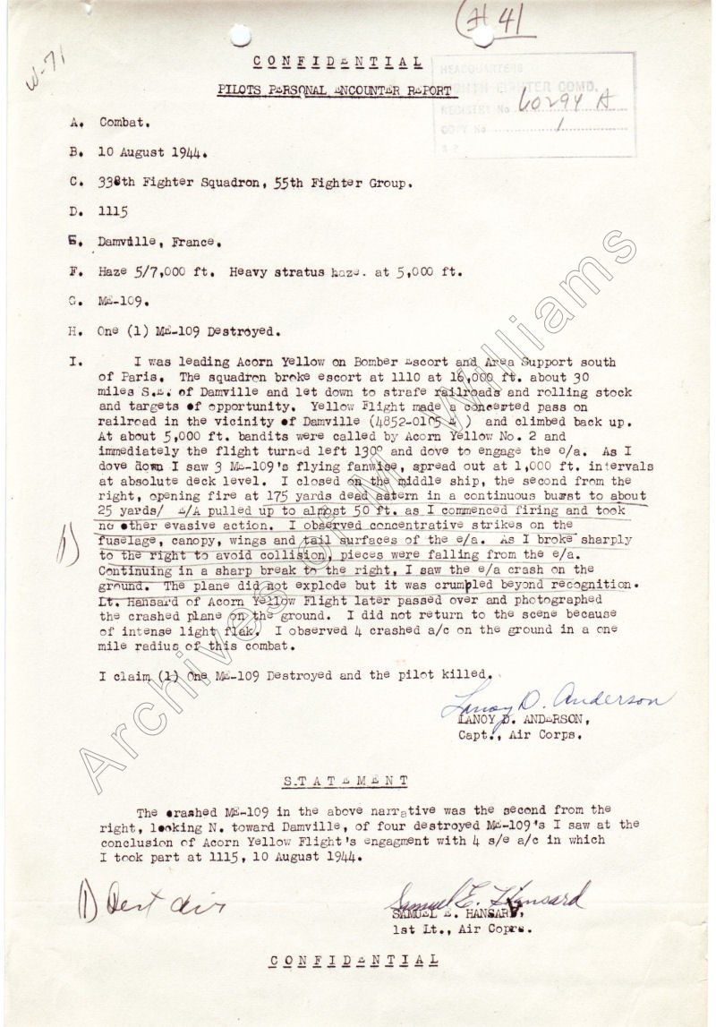 55th FG mené par le Capitaine ANDERSON est alors en mission