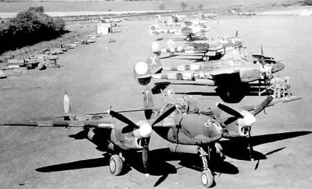 P-38 n°44-23637 du Major James E. TUCKER (au 1er plan)