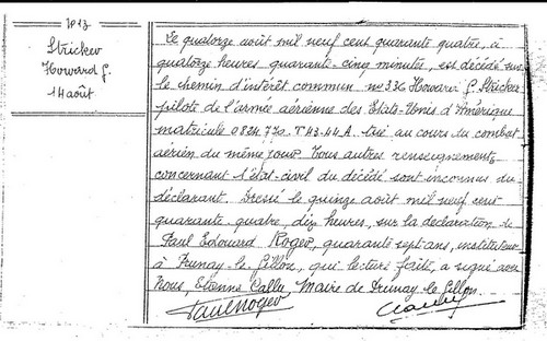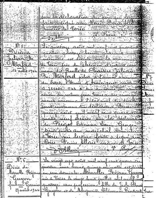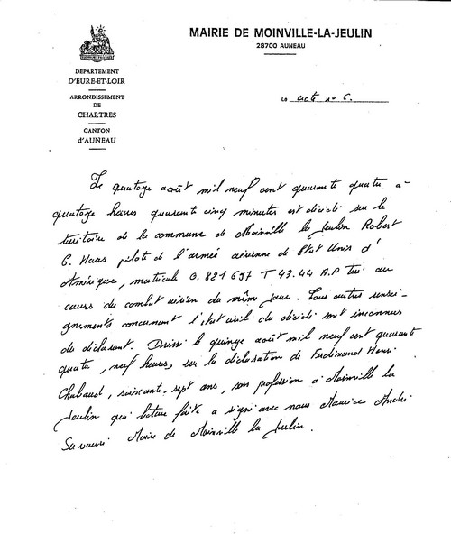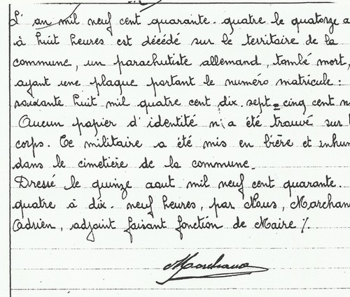 nous avons inhumé le corps en présence de M. le Maire. Le 15 Août 1944, à midi,
