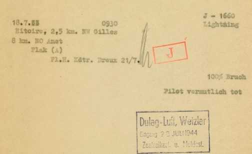 Rapport allemand du crash du P-38 du 2nd Clarence R. Jr. HARLESS à Ritoire (28)