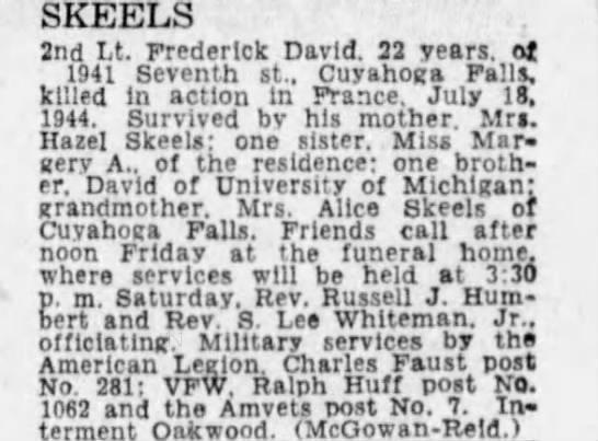 Lt Frederick D. SKEELS (Photo famille Skeels)