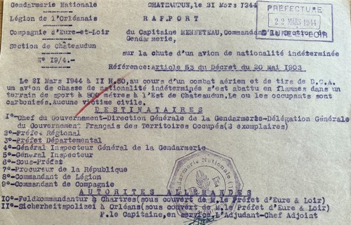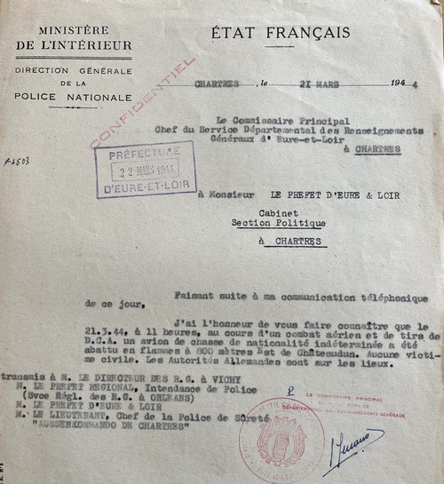 Rapport de gendarmerie de Châteaudun du 21/03/1944 (Source : AD28)