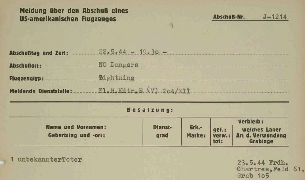 finalement retrouvé dans les restes du P-38 (100% détruit) et