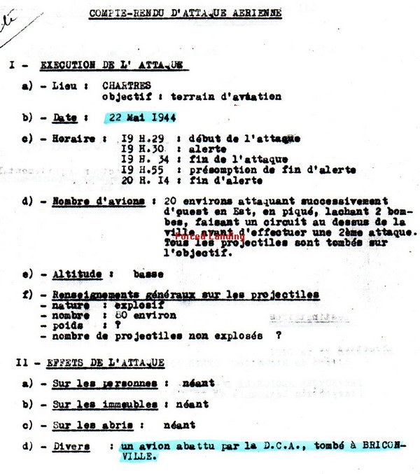 Chartres, 20 chasseurs bombardent successivement en piqué à