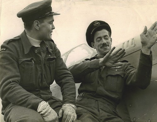Bill KENNEDY et Larry SEATH (collection Famille KENNEDY, via Lee WALSH) . Toutefois, les deux ailliers se perdirent de vue dans la couche de nuage et ne purent poursuivre la mission ensemble. Seul, le F/O SEATH prit la direction du Nord, passant à proximité des aérodromes de Dreux, Saint-André-de-l'Eure et d'Evreux mais la couverture nuageuse ne permit pas d'observer d'appareils ennemis. Le pilote canadien, le F/O L. W. SEATH rentra à sa base à 12H37