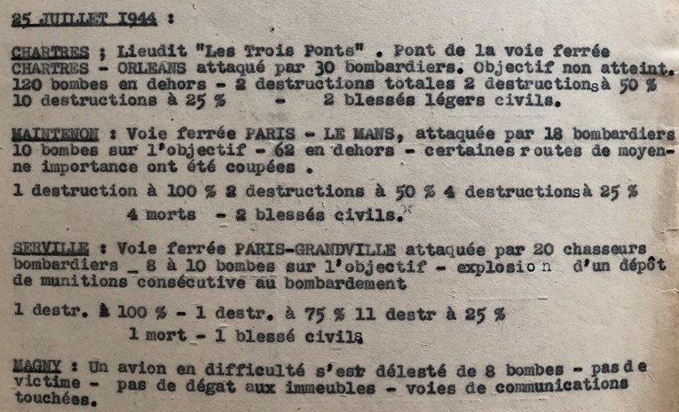 Les bombardements tactiques sur Cloyes, Maintenon et Chartres