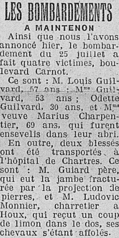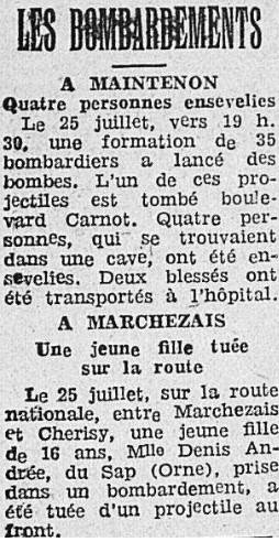 La "Dépêche d'Eure-et-Loir" du 29 et 30 Juillet 1944