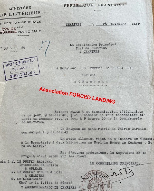 Le 28/11/1942, vers 05H45, un appareil allemand de la 10./KG2 s'écrase au lieudit "La Dunoterie" à 2Km au Nord de Combres, près d'Illiers-Combray. Il s'agit du Do-217 E-4 n°4216 (code tactique "U5+") de la 10./KG2 basée à Melun-Villeroche du 22/08/1942 au 22/04/1944. . Rapport de Police du 28/11/1942 (Source: AD28)