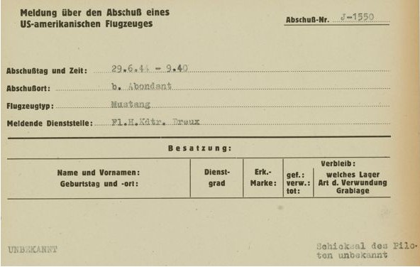 mentionne dans son rapport du 29 Juin 1944, le crash d'un