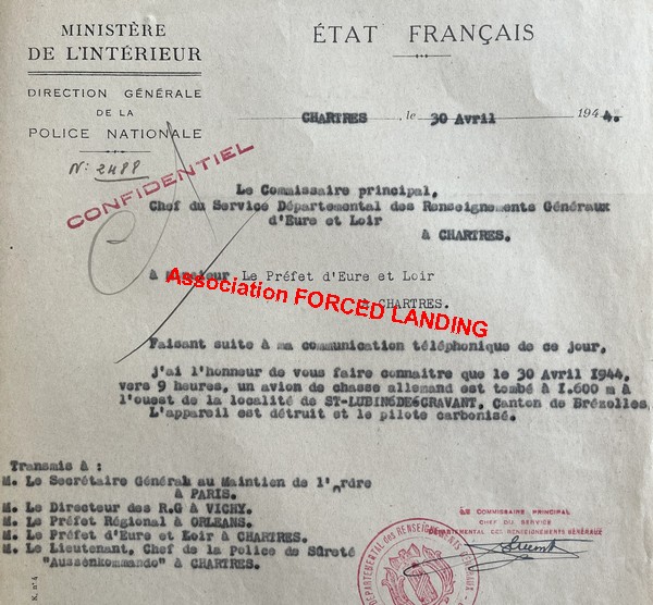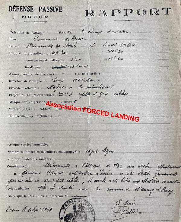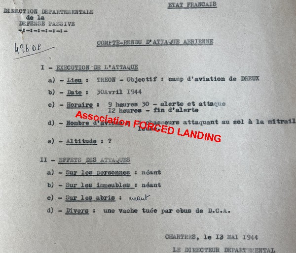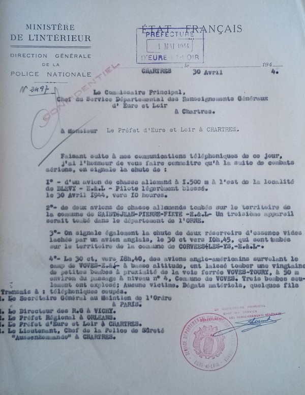 Rapports de la Défense Passive du 1er Mai 1944 (Source: AD28) . Rapports de la Police du 30 avril 1944 (Source: AD28)