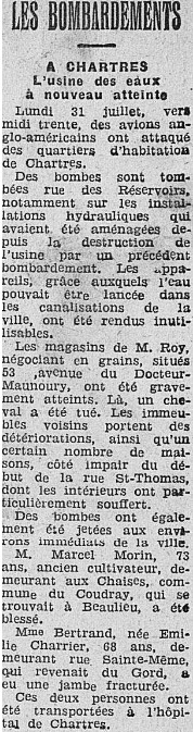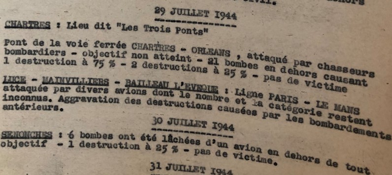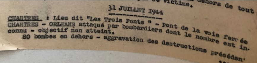 . . Le 29 Juillet, à 19H45, bombardement des voies ferrées "Chartres-Auneau" à la sortie de Chartres. .