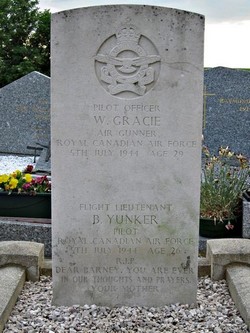 A l’approche de l’objectif et en arrivant au-dessus de l’Eure-et-Loir, le bombardier canadien fut pris en chasse par un appareil allemand au-dessus de Blévy. Le pilote fut mortellement