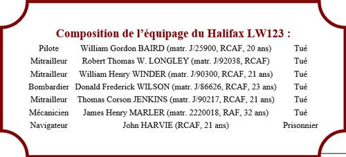 Winder - J. Marler - T. Jenkins - D. Wilson - W. Baird LE HALIFAX DE SAINT-ARNOULT-DES-BOIS Un second Halifax du même