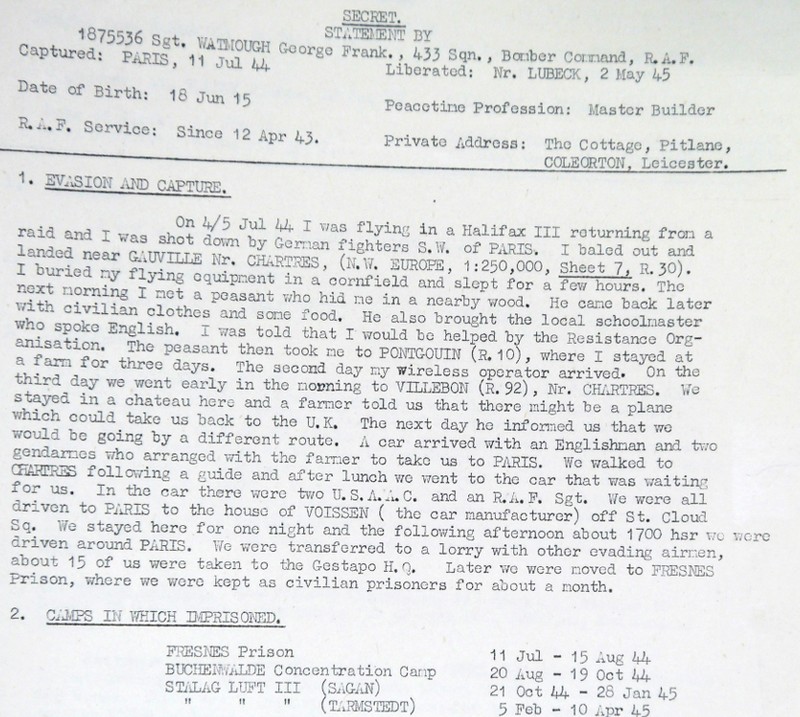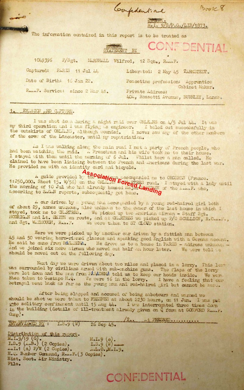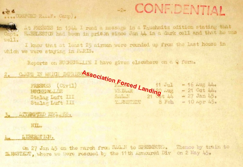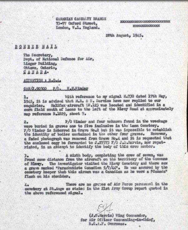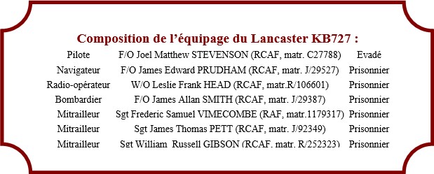 Le F/S GRENON et le F/O HEATHERINGTON sautèrent en parachute et regagnèrent le sol sain et sauf. Ils furent recueillis dans un premier temps par M