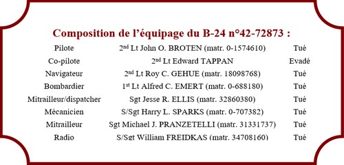 1944, à 23H13, le bombardier B-24 D n° 42-72873 du Lt BROTEN