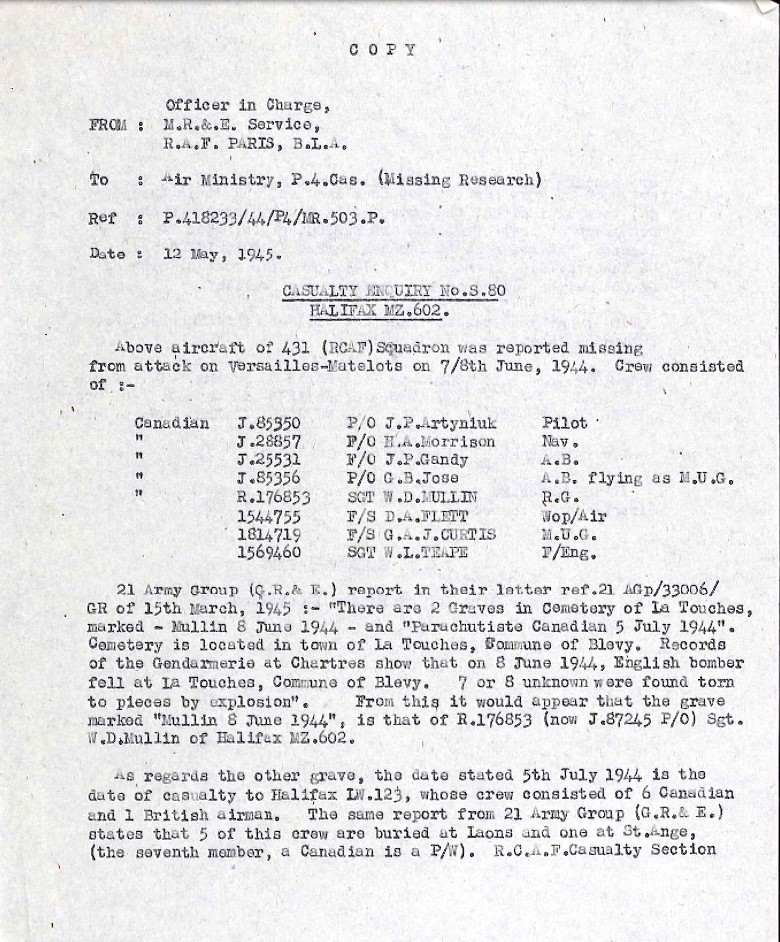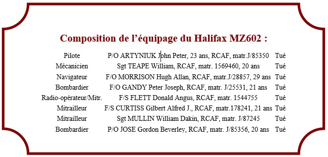 avec pour mission de bombarder la gare de Versailles. Les huit membres d'équipage sont tués. En voici la liste :