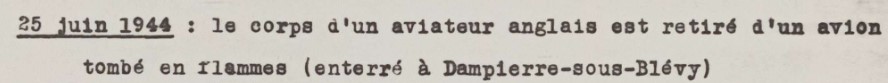 - Le navigateur Harold BASTABLE atterrit près d'Emancé (à l'Est de Maintenon) mais se blesse (cheville cassée). Il fut recueillit par un jardinier chez qui il resta durant 15 jours. Il fut ensuite mis en contact avec la résistance locale qui le cacha en différents endroits jusqu'au 14 juillet, dont Michel BLAISE. Le Réseau d'évasion Picourt le prit à son tour en charge et le transporta à Paris où il fut caché dans un appartement durant une nuit. Il fut finalement arrêté par