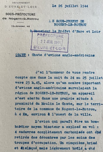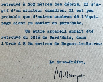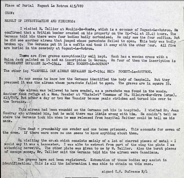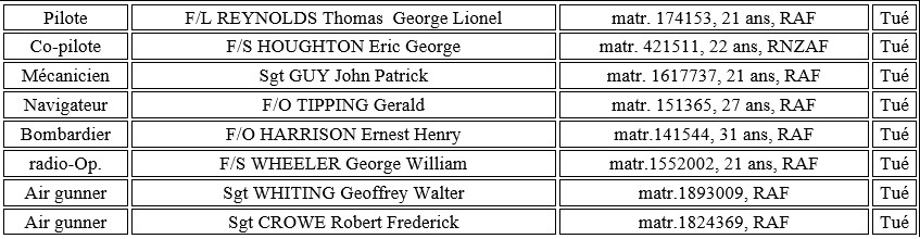 Le sort de l'équipage Cinq membres d'équipage trouvèrent la mort et leurs corps furent inhumés à Nogent-le-Rotrou, où ils demeurent aujourd'hui encore.