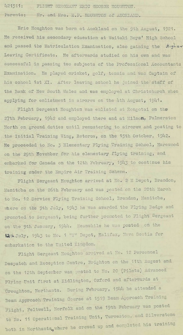 Parcours du F/S Eric George HOUGHTON (source:www.aucklandmuseum.com) Ces deux attaques peuvent être