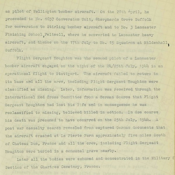 de bombarder la ville de Stuttgart. L’ordre d’évacuation ne put être donné à l’équipage et l’ensemble des membres d’équipage périt.