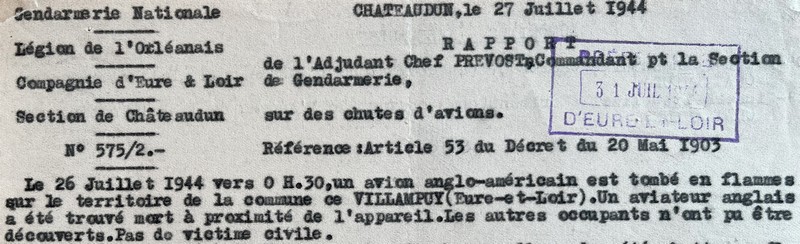 de Châteaudun précise « Le 26 Juillet 1944, vers 00H30, un